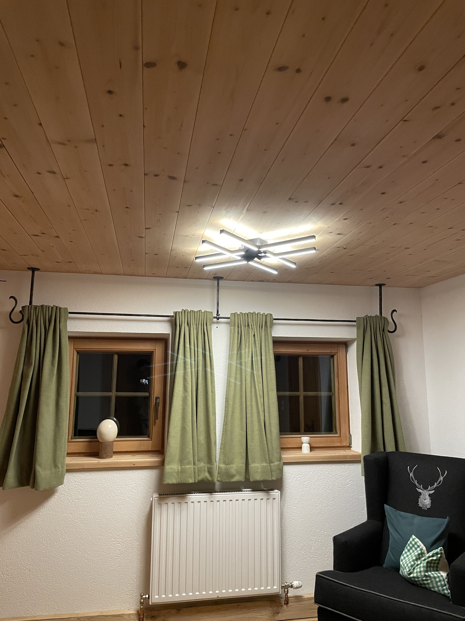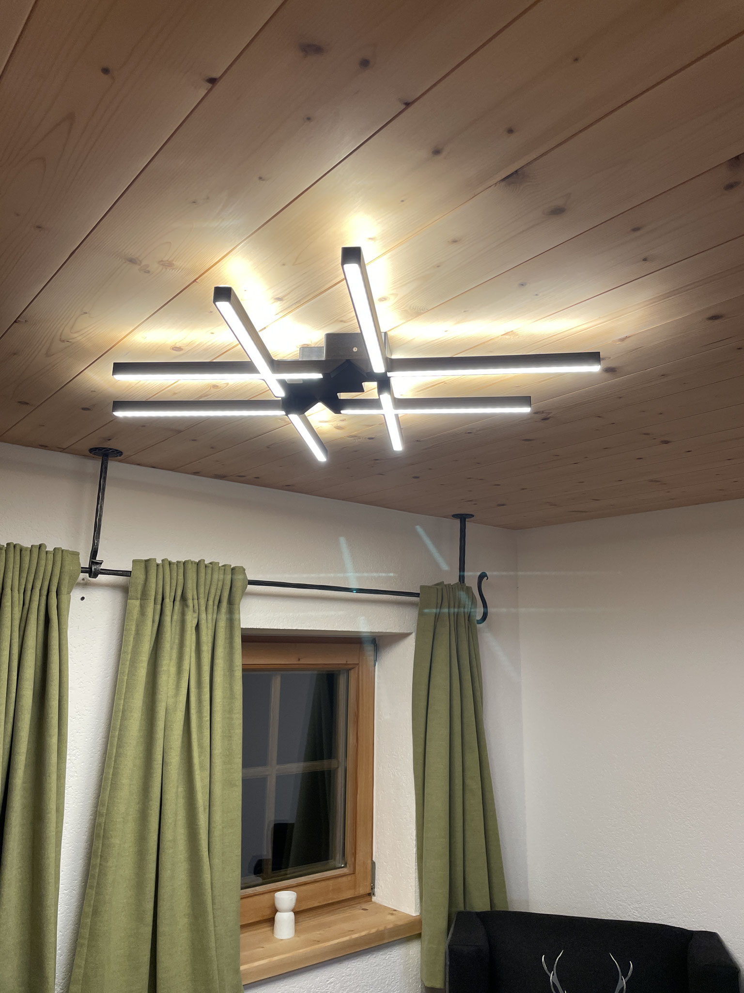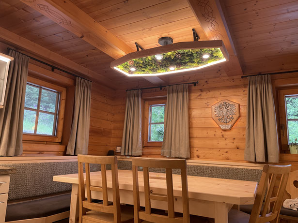 Jede Lampe wird individuell gefertigt und kann in Größe, Holzart, Beleuchtung und Design an Ihre Wünsche angepasst werden. Ein einzigartiges Lichtobjekt – ideal für Wohnräume, Chalets, Gasthäuser oder alle, die natürliche Akzente stilvoll in Szene setzen möchten.
